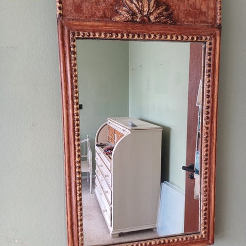 Spejl, antikt, ovalt, 75 x 55 cm, fra begyndelsen af 1900-tallet, meget fin stand men selvfølgelig med (få) brugsspor, guldbelagt, facetslebet glas, aldrig foretaget reparationer, mv. på spejl samt ramme, rammebredde 7 cm, køb det inden det bliver sat til salg hos Bruun-Rasmussen, sendes ikke men kan afhentes i Helsingør eller København Ø, sælges for kr. 1.500