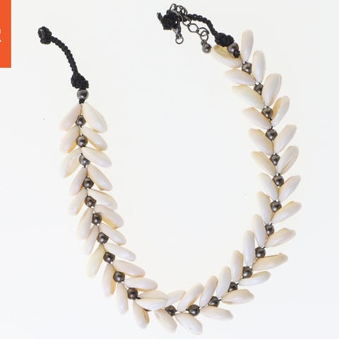 Håndlavet perlehalskæde til unisex med flerfarvet mønster. Halskæden består af små perler i grøn, sort, gul, rød og hvid, sat sammen i et blomstret mønster langs hele båndet. Velegnet som smykke til daglig brug eller som et dekorativt tilbehør til forskellige outfits. Kan bæres af både mænd og kvinder.