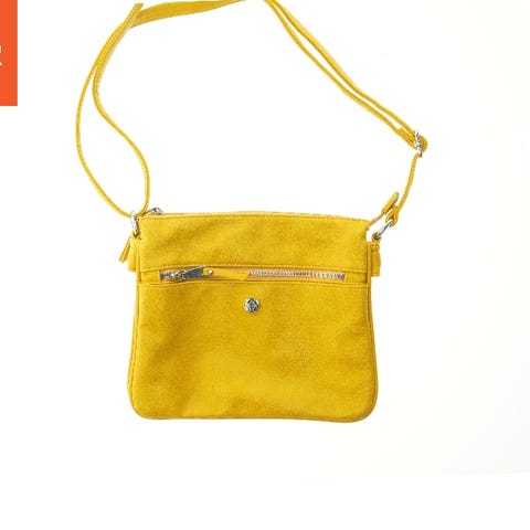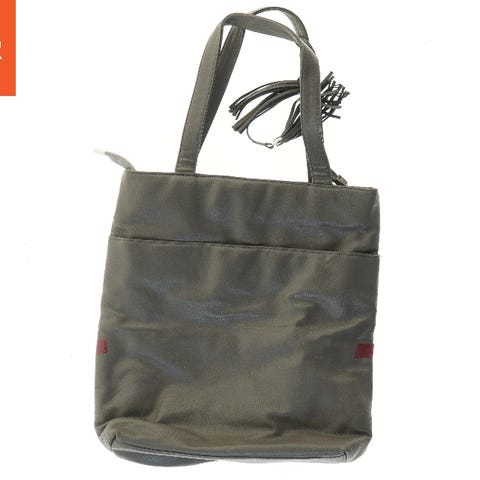 Tasken måler 22x24 cm, har guldfarvede detaljer.