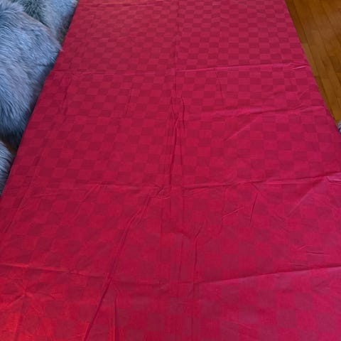 En orange dug med en størrelse på 154x134 cm. Dugen er ensfarvet og har en enkel struktur. Bagsiden har et kontrasterende mønster.