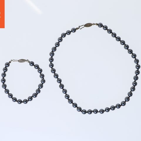 2 stk retro lange perlekæder med skinnende sorte og sølvfarvede perler