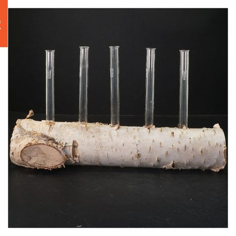 Glasrørene er jævnt fordelt langs træet, hvilket fremhæver birkens naturlige tekstur og giver et elegant udseende. Perfekt til at tilføje en naturlig accent til ethvert rum.