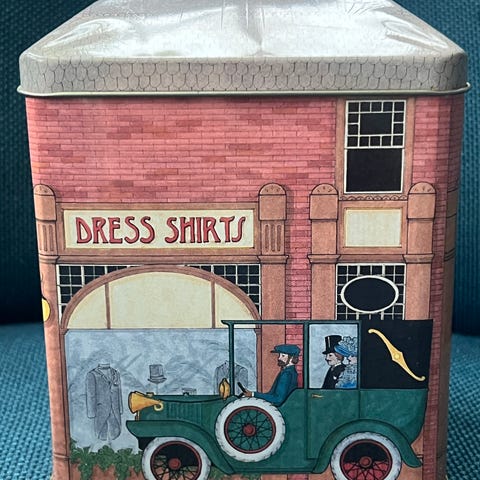 Metalkagedåse formet som en kuffert med Union Jack design og forskellige London-motiver. Den har en størrelse på 16,5x11 cm og er lukket med en klassisk kuffertlås. Indvendigt rummer dåsen forskellige formudskæringer. Den er dekoreret med billeder af berømte britiske vartegn. Tags: kagedåse, souvenir, london, union jack.