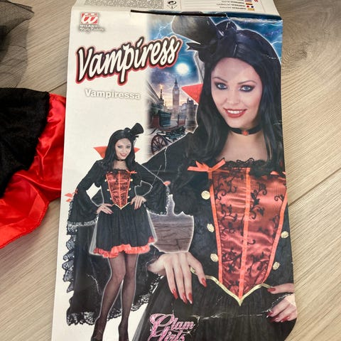 Smiffys Deluxe Voodoo Priestess kostume til kvinde i størrelse S. Kostumet består af en flerfarvet kjole med brun, rød og grøn som gennemgående farver samt dekorationer foran. Sættet inkluderer også matchende hovedbeklædning. Materialet er 100 % polyester. Egnet som udklædning til fx fastelavn, halloween eller temafester.