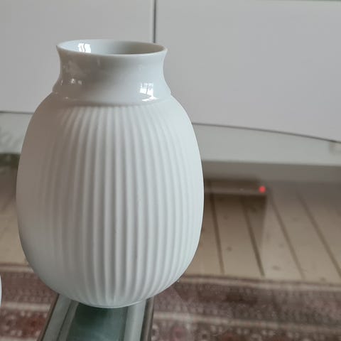 Curve vase fra Lyngby Porcelæn. Højde: 17.5 cm.