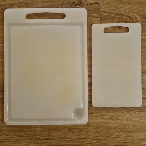 Dette er et skærebræt, der måler 34x25 cm. Det er lavet af plast, og har en håndtag i den ene ende for nem håndtering og opbevaring. Skærebrættet er ideelt til køkkenbrug for at beskytte bordplader mod skærerør og ridser samt for sikker madtilberedning.