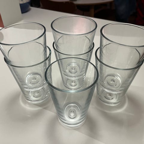 Eva Solo drikkeglas i klart glas. Glasset har let konisk form med Eva Solo-logo på siden. Højden er ca. 10 cm, og diameteren foroven er ca. 9 cm. Velegnet som almindeligt drikkeglas til vand, juice eller andre kolde drikke. Leveres i original emballage