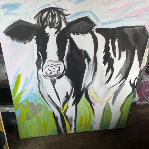 Original ko i tørpastel – 40x40 cm