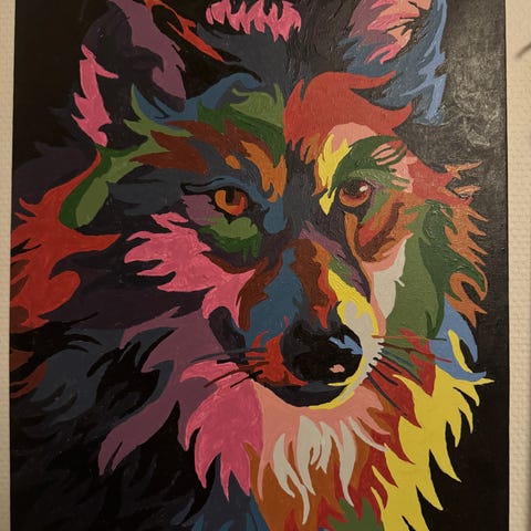 Original håndtegnet ulveportræt udført i tørpastel.