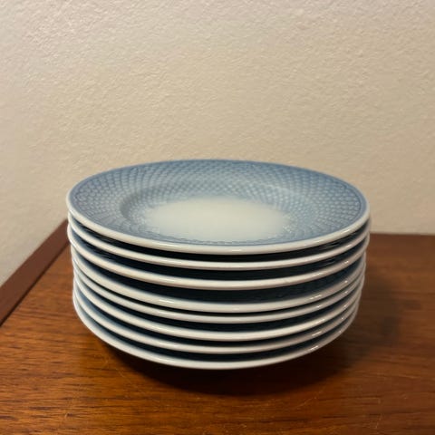 Har andre middagstallerkener, dybe tallerkener, kagetallerkener af samme stil tilsalg, og Royal. Tjek mine andre annoncer