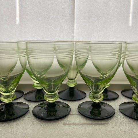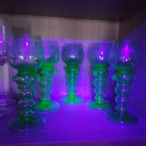 Uran-glas antikke glas med uran som gør glassene lyser op i den flotte grønne farve