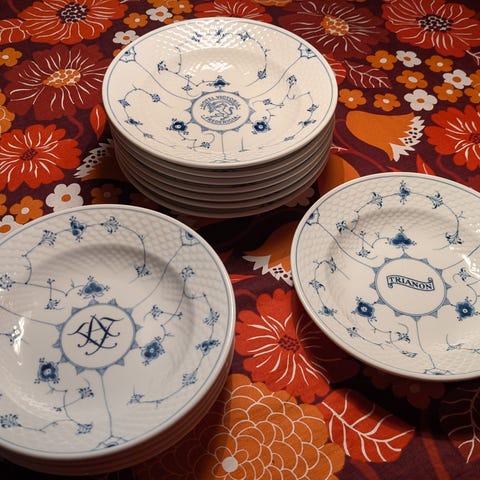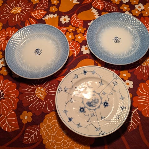 Bing og Grøndahl blåmalet, hotel porcelæn, kagetallerkener