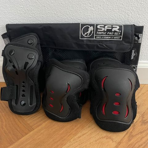 SFR Youth Ramp beskyttelsessæt til børn/unge. Sættet indeholder knæ-, albue- og håndledsbeskyttere i pink og sort. Leveres i netpose. Velegnet til brug ved rulleskøjter, skateboard, løbehjul og lignende aktiviteter, hvor der er behov for ekstra beskyttelse af leddene.