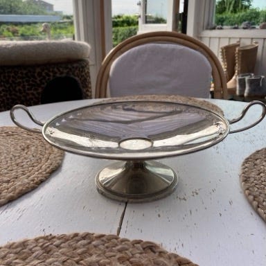 Platte/fad, -, Lille platte/fad i træ malet med fine blomsterdetaljer. Cirka 15cm