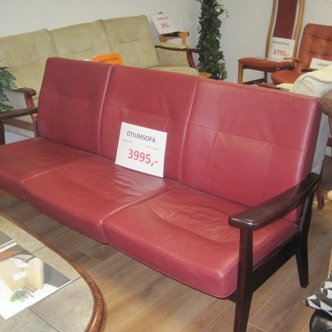 Flot 2 personers sofa med stel i bøg og betræk i lys læder.
