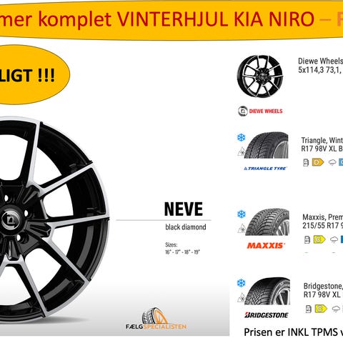 Sælger et sæt originale Kia 17” vinter komplethjul til Kia Niro MY23 (2023->).