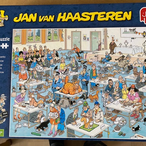 Jan van Haasteren hesteløb puslespil med 1000 brikker. Motivet viser en detaljeret og humoristisk scene fra et hesteløb med mange figurer og aktiviteter. Puslespillet er egnet til voksne og større børn, der kan lide udfordrende puslespil med mange små detaljer. Leveres i original æske med illustration af motivet på forsiden.