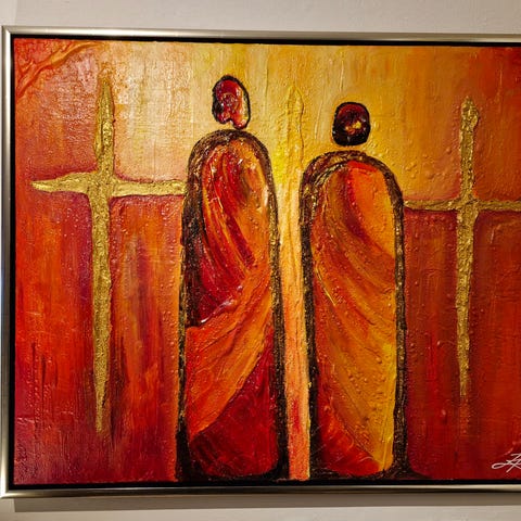 Maleri som jeg selv har lavet og leveres med luksus lærred samt en luksus galleri ramme med en gylden sølv på front samt med mat sorte sider.