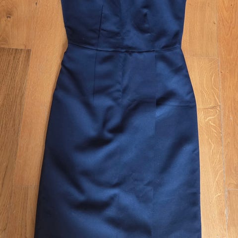 COS festkjole i plisseret design. Kjolen er blå og fremstillet i polyester. Størrelse 38, velegnet som cocktail- eller festkjole til kvinder. Ærmeløs model med halterneck-lignende udskæring og knaplukning i nakken. Lang, løstsiddende pasform med faldende plisseringer hele vejen rundt.