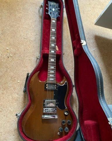 Gibson SG fra 2003 i WineRed finish. Modellen har dobbelt cutaway mahogni-krop, to humbucker 490-pickupper, sort slagplade og separat volumen- og tonekontrol for hver pickup. Guitaren har indlagte positionmarkeringer på gribebrættet og klassisk Gibsonhoved med mekanikker i vintage-stil. Velegnet til elektrisk guitarspil i forskellige genrer - særligt god til rock og hard-rock. Der medfølger en Gibson Guitar hard case (kuffert).