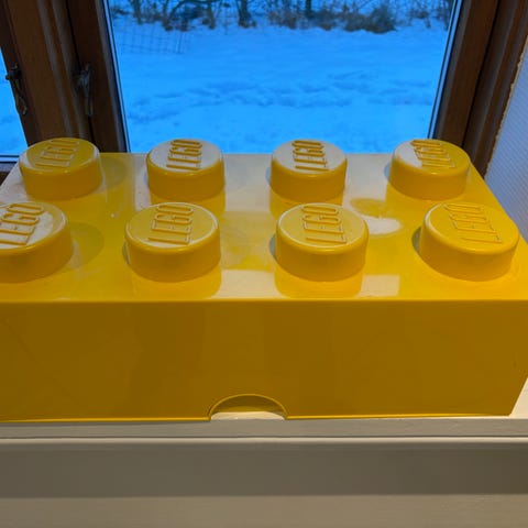 LEGO hoved opbevaringsbøtte med håndtag gul plast