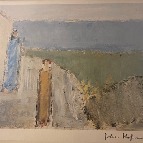 ”Ved lystbåd havnen” og er i rammestørrelse 57x64 cm med passe partout.