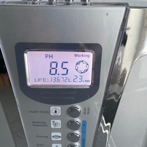 Model 7: Denne maskine med 7 titaniumplader kan levere 5 niveauer af alkalisk vand, neutralt vand og 2 niveauer af syre vand. Digital visning af forskellige Ph-værdi. Kan påføres himalayasalt, som bl.a. er godt for hud, eksem og psoriasis.