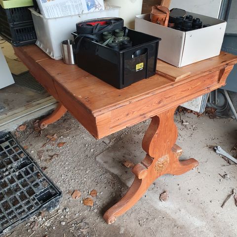 Fint gl bord med skuffe , med porselæns knopper , virkelig hyggeligt i køkken eller stue