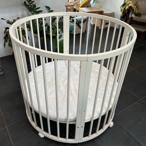 Rund kravlegård med hjul og ekstra madras