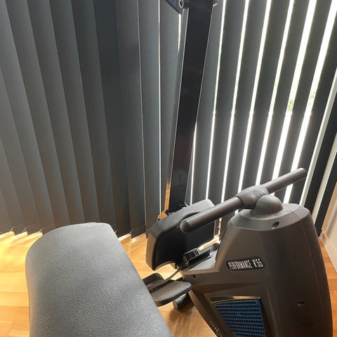 Smart romaskine af mærket Cambridge II, der fylder minimalt, når du ikke bruger den. Den blev købt i juli 2021 under pandemien, og har ikke været brugt ret meget siden, og den fremstår derfor nærmest som ubrugt. Der medfølger solidt underlagt til romaskinen, så den ikke laver mærker i gulve.