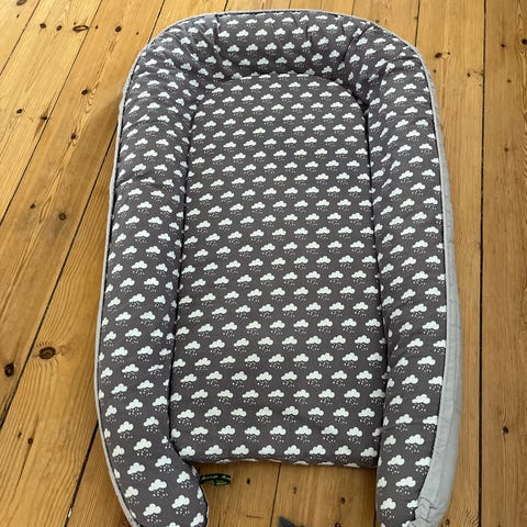 Done by Deer babynest med mønster. Babynesten har blød polstring rundt i kanten og en madras i midten. Yderstoffet har et diskret print med små motiver. Babynesten leveres i en opbevaringstaske med hank og lynlås, som gør den nem at transportere og opbevare. Velegnet som tryg sove- og hvileplads til spædbørn i hjemmet eller på farten.