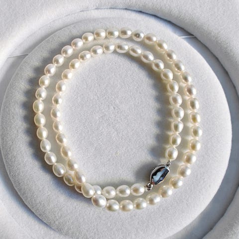 En rigtig smuk 5 radet perlehalskæde af ferskvandsperler