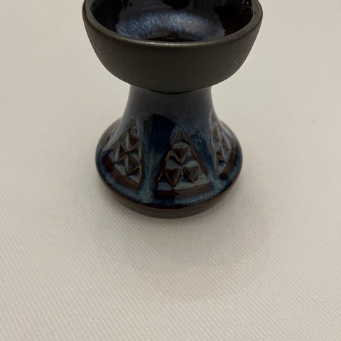 Vase/lysestage fra Søholm, med dato print på siden. Ca 10,5 cm høj. 1,8 cm åbning til lys. Kr 20