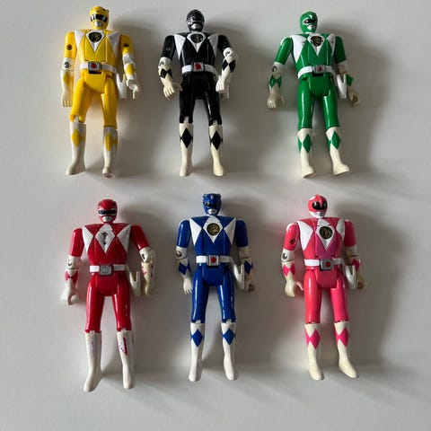 2 komplette sæt Micromachines Power Rangers fra 1990'erne, hhv. rød og sort. Der er også et par grå figurer, som vistnok også er fra et Power Rangers sæt.