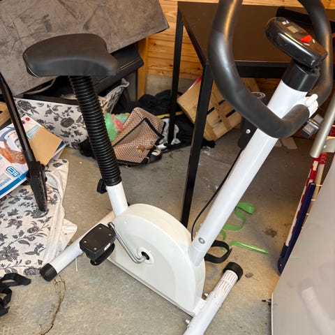 Odin motionscykel i sammenklappeligt design i grå og sort. Cyklen har justerbar sadel og pedaler med rem. På styret sidder et simpelt display, der kan vise basale træningsdata som tid, distance og eventuelt kalorieforbrug. Modstanden kan reguleres med drejeknap under displayet, så belastningen kan tilpasses. Velegnet til indendørs konditionstræning og let motion i hjemmet.