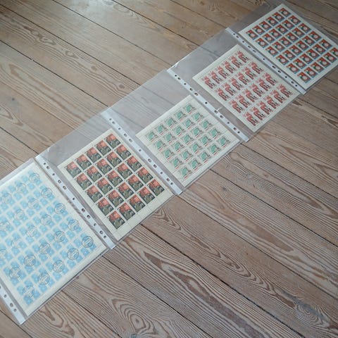 3.ark er postfriske og 1.ark er stemplet.