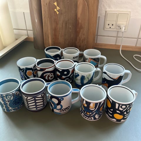 2 af de små årskrus i fajance fra Royal Copenhagen.