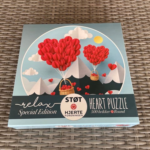 500 brikker. Puslespilsstørrelse er ca. 58,5 cm. Lagt en gang.