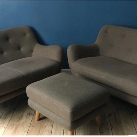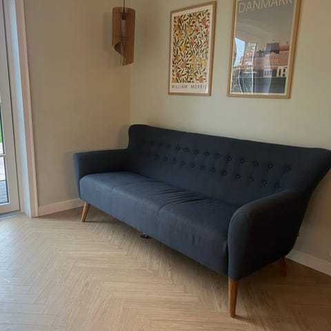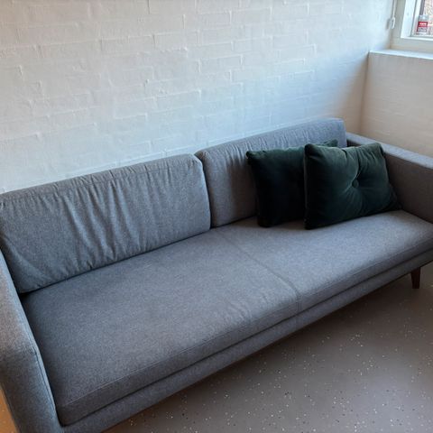 Herman 2 seater i gråt stof med sorte træben. Meget fin stand.