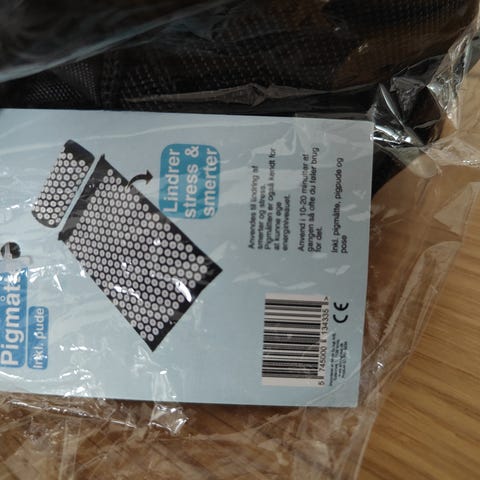 Pigmåtte med pude og pose. Lindrer stress og smerter.