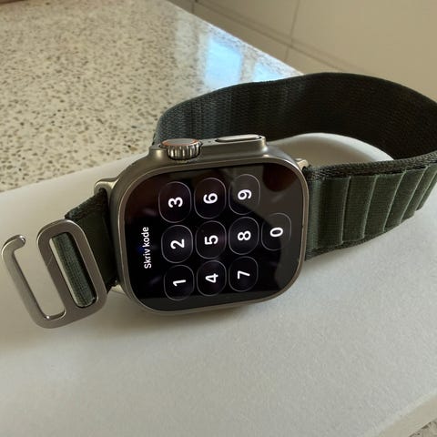Sælger min Apple Watch Ultra 1. generation i flot stand.