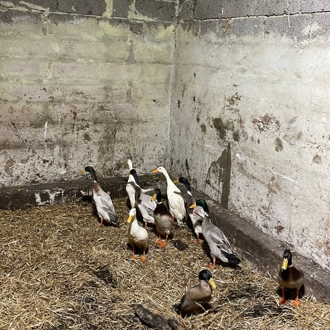 Hønsene er 1 år gamle og ænder er 1,5 år