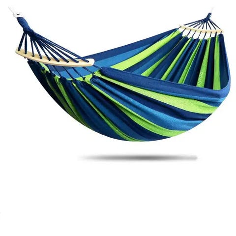 Hængekøje Lux 230x150cm Hvid Lækker hængekøje til 1 - 2 personer med en max belastning på hele 180kg Brand: Playstuff Camping Hammock Materiale: 320gsm canvas+ Endereb: Ja, 2stk medfølger Enderinge: Ja, 2stk Max Belastning: 180kg Størrelse: 230x150cm (Stoffet) Farve: Råhvid Transportpose: Medfølger At slappe af i en hængekøje er en fantastisk måde at nyde udendørs på og finde ro og afslapning. Her er nogle instruktioner til at opsætte og bruge en hænge køje: Find et egnet sted: Vælg et område med tilstrækkelig plads til at hænge din hænge køje. Det kan være mellem to træer, på en hænge køje-stativ eller enhver anden egnet støttestruktur. Sørg for, at området er frit for farer og har tilstrækkelig plads til at strække hængekøjen ud. Montering mellem to træer: Vælg to træer, der er stærke og robuste nok til at bære vægten af hænge køjen og brug eventuelt beskyttelse, såsom træbeskyttelsespolstring eller beskyttelsesremme, for at undgå skade på træerne. Bind en robust og slidstærk rem eller et reb omkring det første træstamme, der er tilstrækkeligt højt og stærkt til at bære vægten. Gentag processen med det andet træ. Sørg for at sikre, at remmene eller rebene er stramme og i niveau med hinanden for at opnå en jævn og behagelig hænge køje oplevelse. Montering på en hængekøjestativ (Medfølger ikke): Følg producentens instruktioner til at samle køjestativet hvis du benytter sådan et. Sørg for at samle det stabilt og sikkert. Placer køjen på stativet ved at hænge den i de tilhørende kroge, karabinhager eller andet fastgørelsesudstyr. Justér højden og spændingen på hænge køjen, indtil den er behagelig og niveau. Opsætning af hængekøjen: Fold køjen ud og hold den i midten. Fastgør hver ende af hænge køjen til de forberedte monteringspunkter. Dette kan være kroge, karabinhager eller reb, afhængigt af din opsætning. Sørg for, at hænge køjen er jævnt spændt og hænger lige. Justér højden og stramheden af hængekøjen efter behov for at opnå den ønskede komfort. Brug af hængekøjen: Træd forsigtigt ind i hænge køjen og find en behagelig position. Du kan ligge vandret, diagonalt eller på tværs af hænge køjen, afhængigt af dine præferencer. Justér din position og ryglæn for at finde den mest komfortable og afslappende stilling. Slap af, læs en bog, lyt til musik eller bare nyd naturen, mens du svinger forsigtigt i hængekøjen
