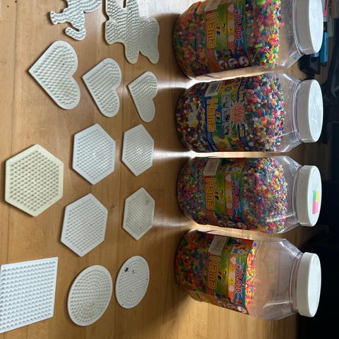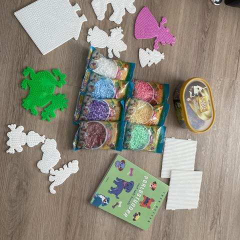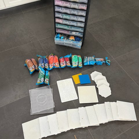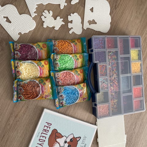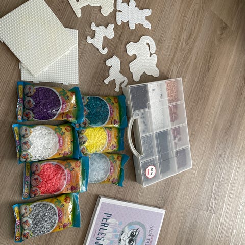 perlesæt med plader og opbevaringsboks flerfarvet plastik