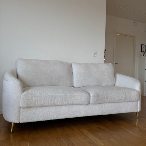 Hvid sofa købt i januar 2026 jeg gav 2600 for den ved b’s furniture og sælger den til kun 1000 kr