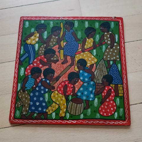 Ukendt kunstner maleri bro og bymotiv guldtoner