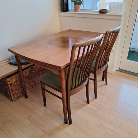 Vintage kvadratisk spisebord med 1 tillægsplade