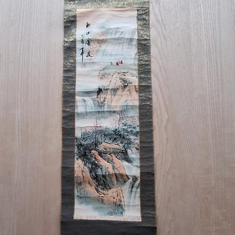 Dekoration, Papir, 10 år gl., Flot håndmalet kinesisk rulle med asiatisk motiv.
