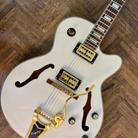 Epiphone Joe Pass Emperor-II Pro halvakustisk guitar i sunburst-finish. Hollowbody-konstruktion med f-huller og indbygget elektronik til både akustisk og forstærket brug. Klassisk archtop-design med trapez-halestykke, to volumeknapper og to tonekontroller. Velegnet til blandt andet jazz, blues og lignende stilarter, hvor en varm og åben halvakustisk lyd er ønsket.