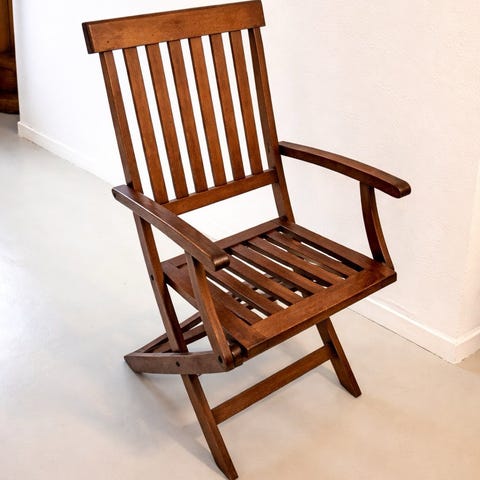 Havebord i massivt træ tror at det er teaktræ bordet måler 200 x 100 sammen slået foldet ud med de to plader som ligger under bordet er det 280 langt, der følger 10 havestole med i købet